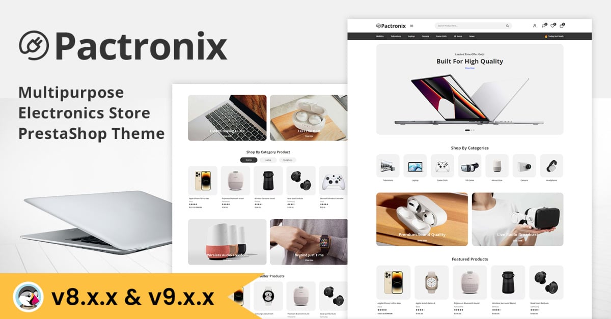 Pactronix: Computers & Electronics The sleek, contemporary, and potent PrestaShop theme was created for shops selling computers, electronics, and gadgets. Visitors may buy with ease on any device thanks to its smartphone-friendly and completely flexible layout. Pactronix includes advanced product filtering, intuitive navigation, quick view options, and customizable layouts to …