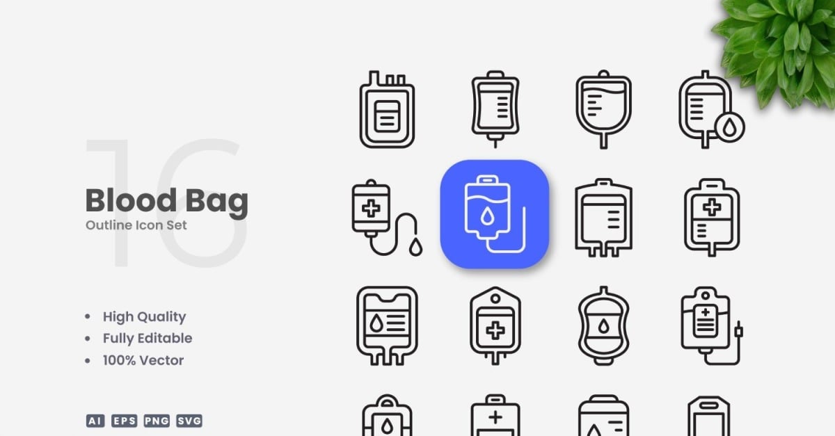 Set of 16 Blood Bag Outline Icons | Simple and clean design, perfect for websites, mobile apps, books, social media, infographics, flyer, print, banners, posters and many more. To resize or change color you can easily edit on vector software like Adobe Illustrator and CorelDRAW. Features : High Quality Design100% Vector100% …