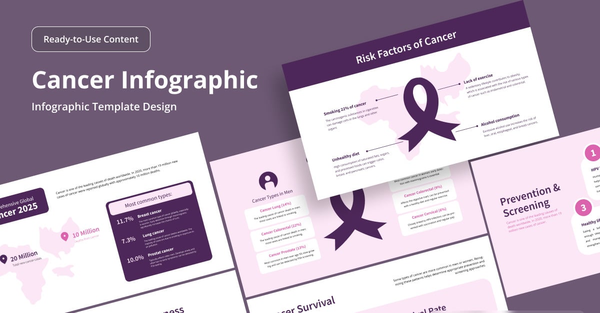Build data-driven reports for oncology or public health campaigns using this clean infographic layout. Designed to balance clarity and authority, it’s ideal for presenting complex data like treatment outcomes, patient distribution, or clinical results in a way that’s both modern and trustworthy. **Highlights:** – 6 Infographic Design Variations – Fully …