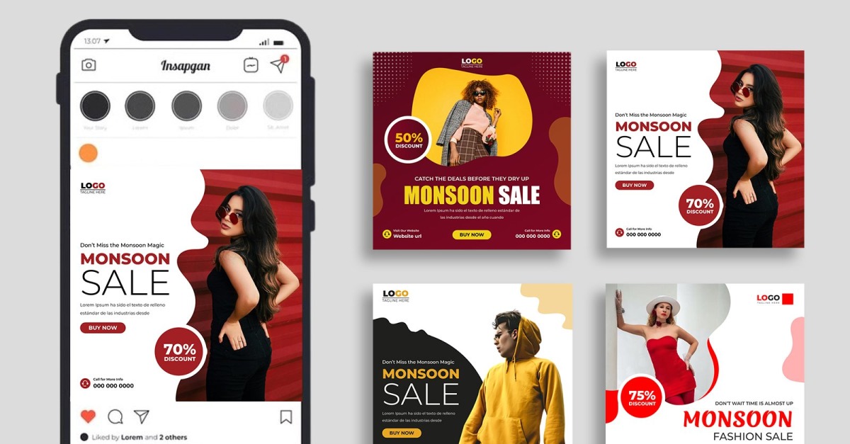 Boost your seasonal sales with this Monsoon Fashion Sale Promotion Social Media Instagram Post Banner Template. Created in Adobe Illustrator, this design blends vibrant seasonal elements with modern typography to perfectly highlight your fashion deals. Ideal for clothing brands, boutiques, and online fashion stores, it’s crafted to capture attention and …