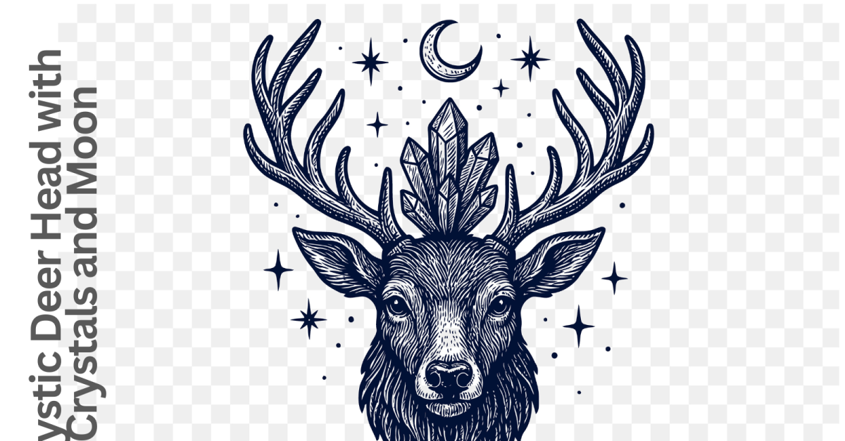 Mystic Deer Head with Crystals and Moon – Vintage Engraved Celestial Animal Art A stunning, vintage-style engraved illustration of a majestic deer head with crystal antlers, surrounded by stars and a crescent moon. This mystical animal artwork blends natural wildlife with cosmic symbolism, making it ideal for tattoo designs, boho …
