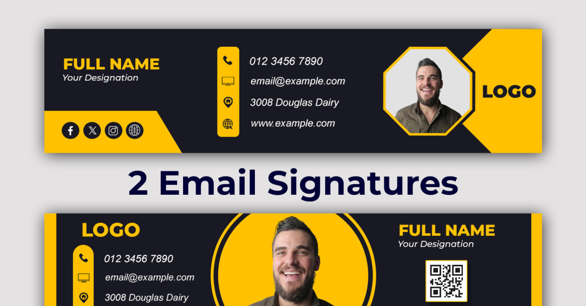 Creative Email Signature Bundle | 2 Modern PSD Templates | Easy Photoshop Editing This Creative Email Signature Bundle comes with 2 modern PSD templates designed to give your email communication a fresh, professional edge. Whether you’re a freelancer, designer, entrepreneur, or corporate professional, these email signatures are built to reflect …