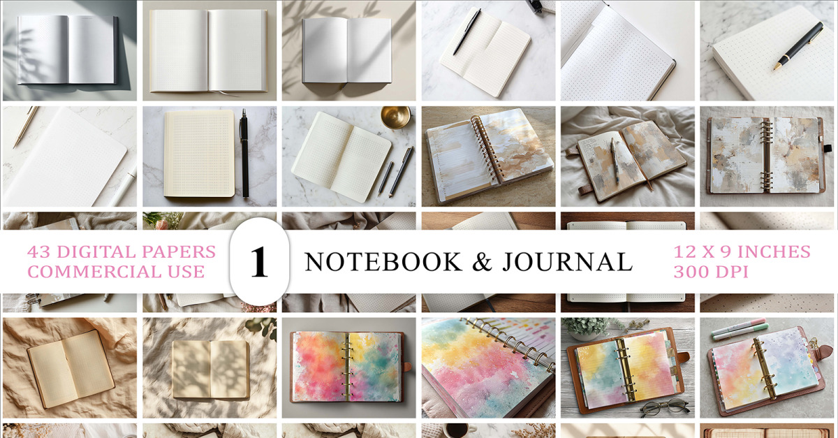 43 Minimalist Notebook & Journal Backgrounds Bundle | Premium Quality | Commercial Use Ready A versatile collection of flatlay notebook and journal, designed with a clean, neutral aesthetic. These high-quality are perfect for showcasing digital planners. What You Get: ✔ 43 Unique Minimalist Notebook & Journal Bundle Digital Paper Backgrounds …