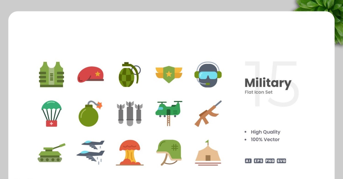 Set of 15 Military flat icons | Simple and clean design, perfect for websites, mobile apps, books, social media, infographics, flyer, print, banners, posters and many more. To resize or change color you can easily edit on vector software like Adobe Illustrator and CorelDRAW. Features : High Quality Design100% Vector100% CustomizableEasy …